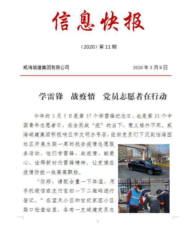 威海城建集團全力做好新型冠狀病毒感染的肺炎疫情防控工作