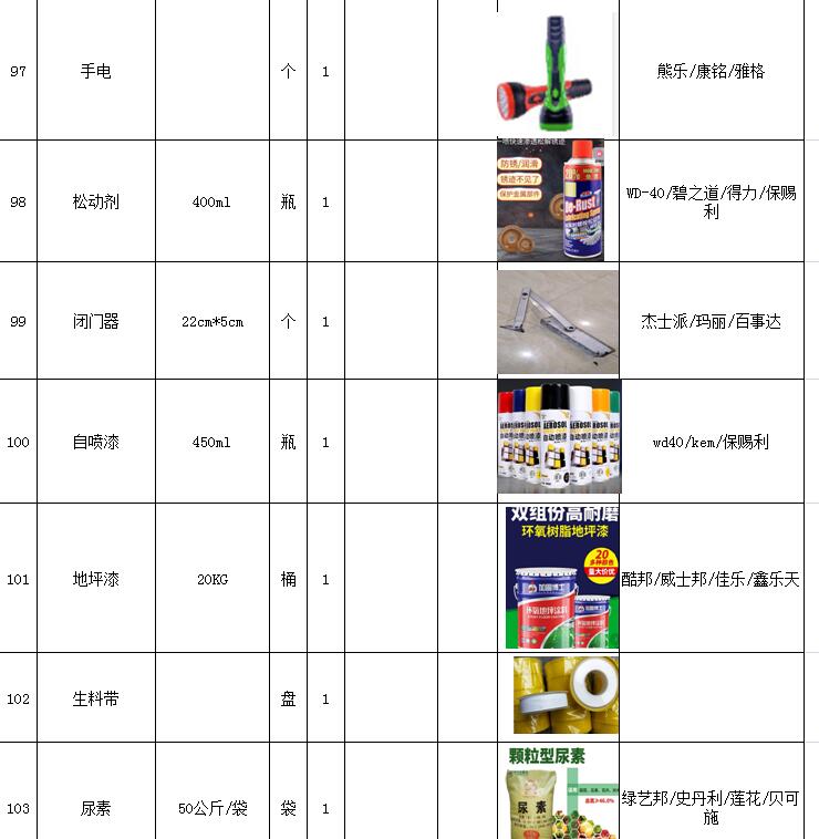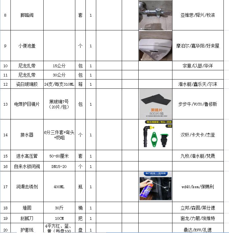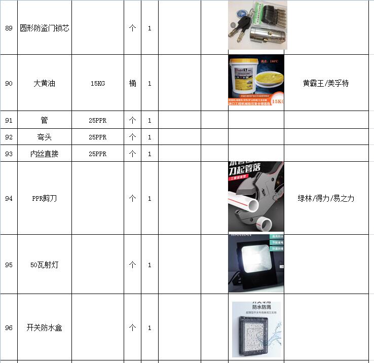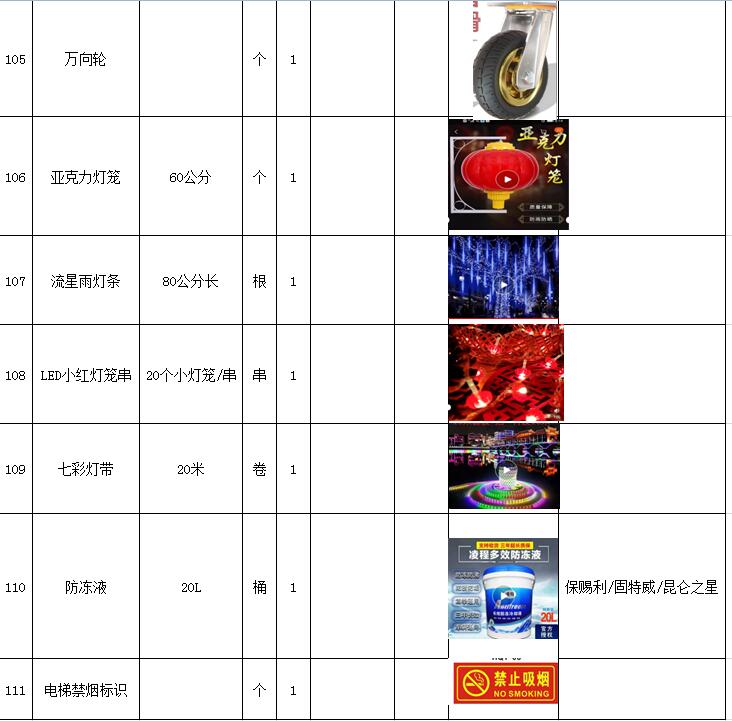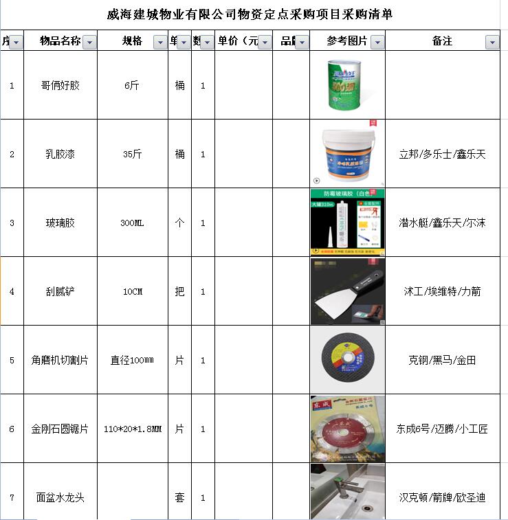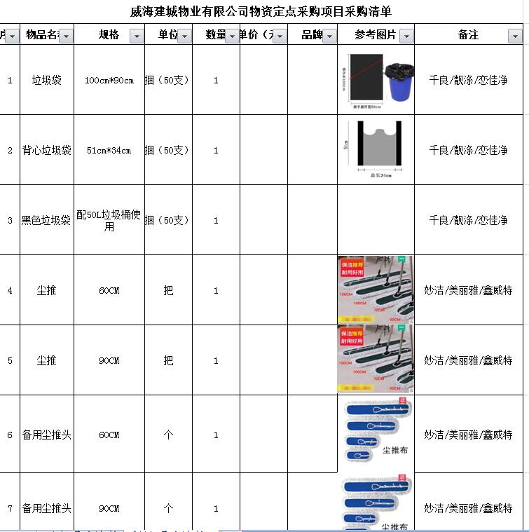 (5)采購(gòu)內(nèi)容:威海建城物業(yè)物資定點(diǎn)采購(gòu),主要包括五金、水暖管件、保潔、維修、綠化所需物資、應(yīng)急維修的其他物資等,采購(gòu)清單詳見(jiàn)附件。