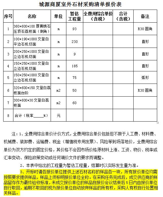 城源商廈室外石材采購項目